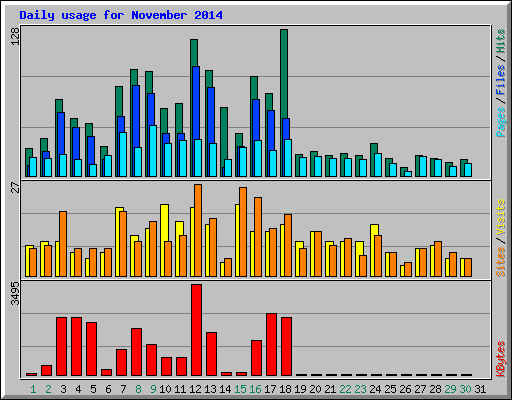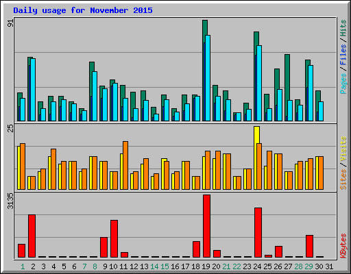 | Day | Hits | Files | Pages | Visits | Sites | KBytes | ||||||