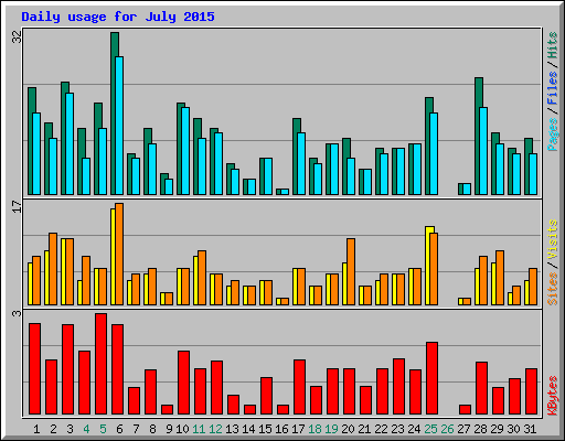 | Day | Hits | Files | Pages | Visits | Sites | KBytes | ||||||